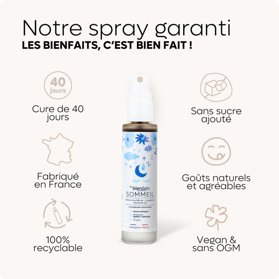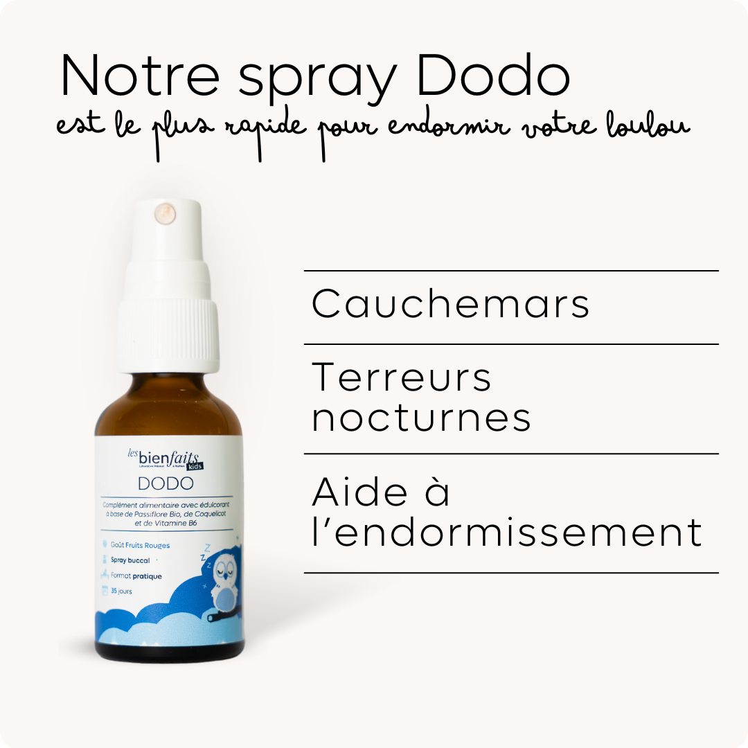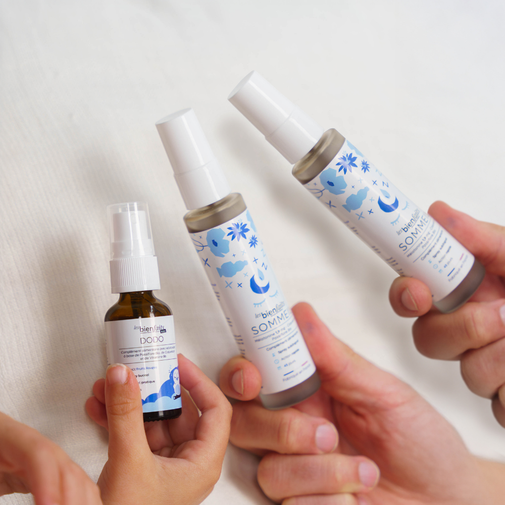 Les sprays Sommeil pour adulte et DODO pour les enfants dès 3 ans, sont les solutions les plus rapides pour trouver le sommeil en quelques minutes.