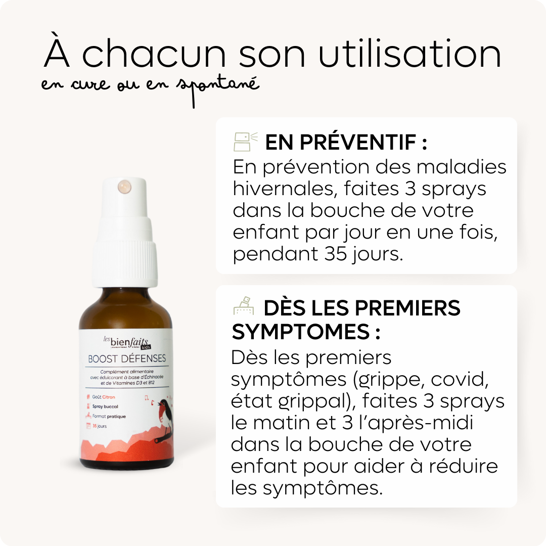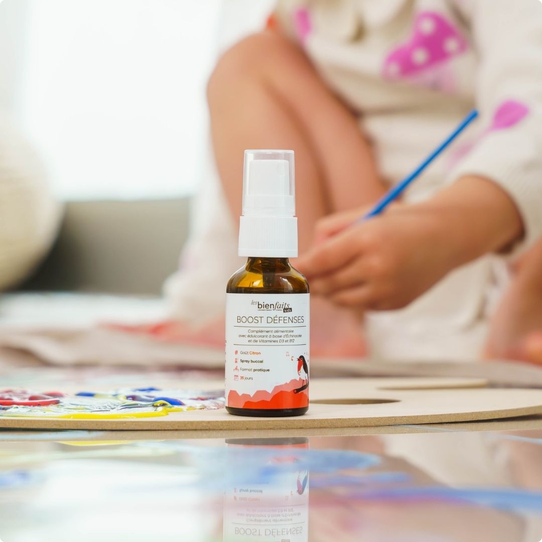 En plus du côté pratique et facile à donner à un enfant, le format spray apporte de nombreux avantages, dont le côté naturel et la conservation qui ne se fait pas au frigo comme les sirops"