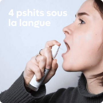 Bien secouer votre spray, 4 pulvérisations sous la langue, patientez 10 secondes et hop !