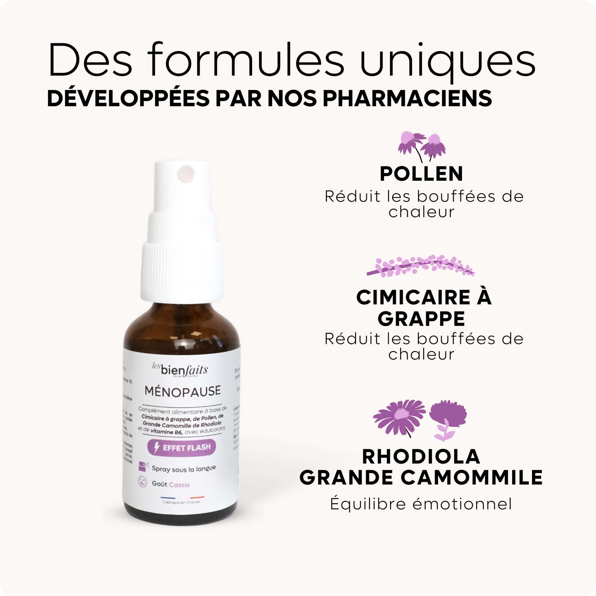 Notre spray Ménopause est la solution la plus rapide pour lutter contre les sueurs nocturnes et bouffées de chaleurs en quelques minutes.